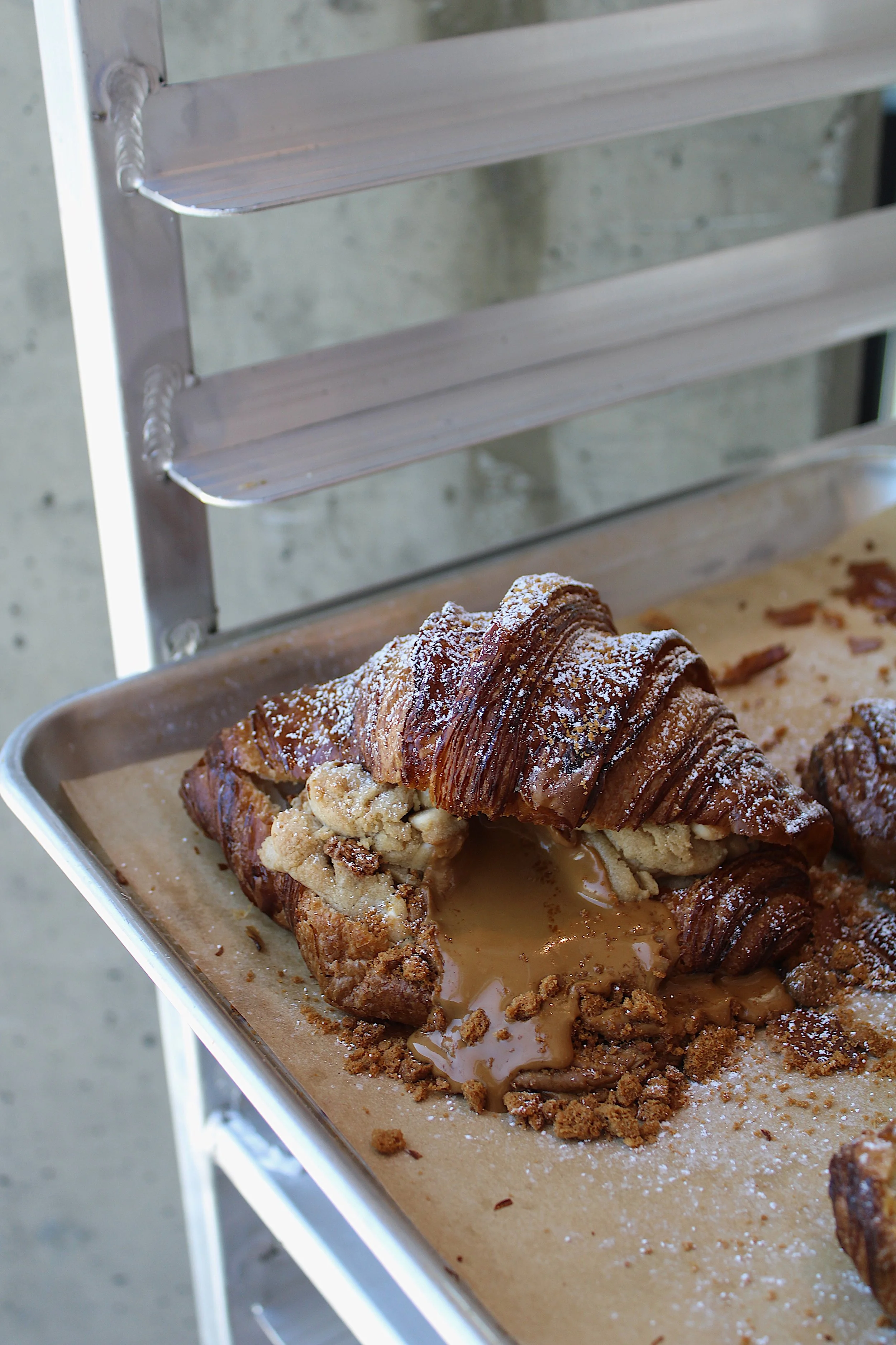 An incredible creation… “Le Crookie” features a freshly baked butter croissant from our West Adam’s neighbor Tartine filled with our signature cookie au beurre cookie dough. Topped with a sprinkle of powdered sugar, this Crookie is as premium as it gets. Delicious and unique. Limited quantities available daily + baked fresh daily!